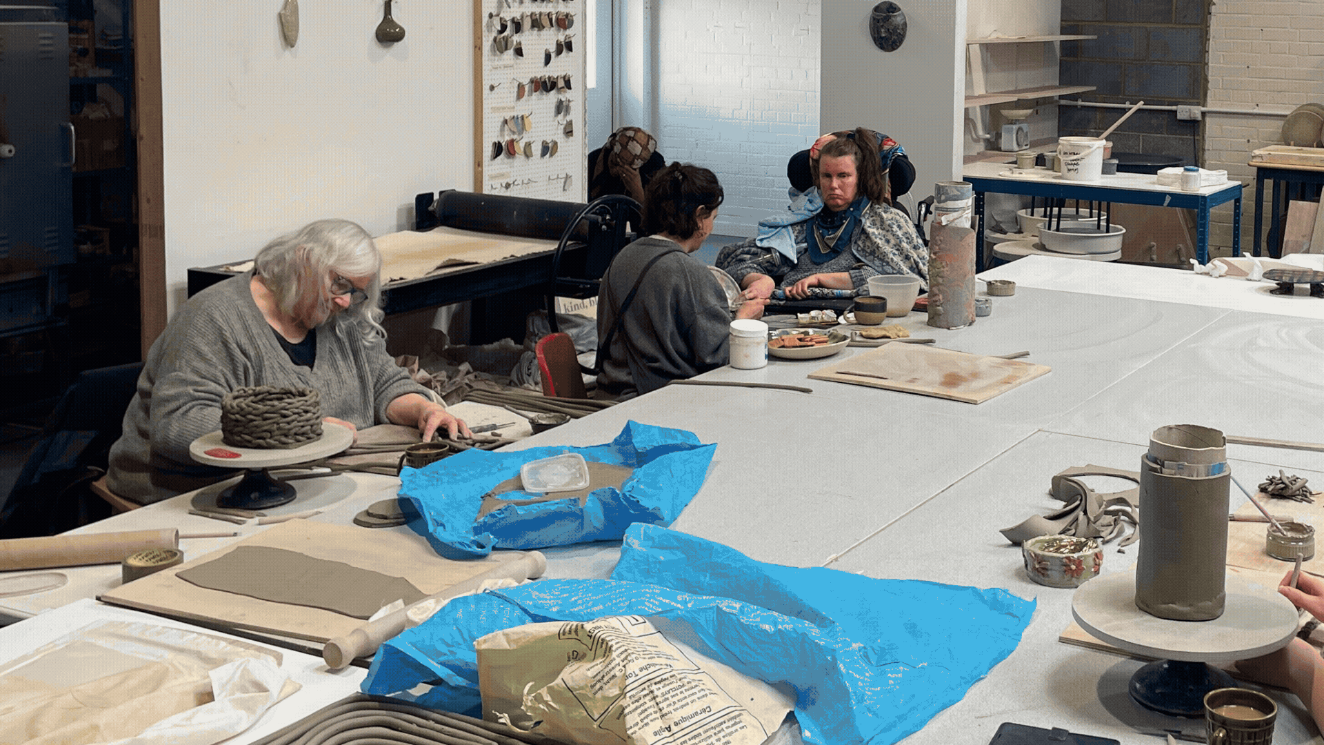 Process images from supported sessions at Common Clay (funded separately), showing the communal studio environment that this R&D grows from.